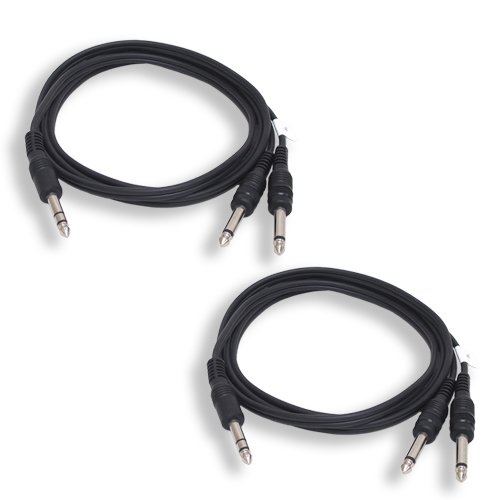 GLS Audio 6ft Insert Cable Cords - 1/4" TRS Stereo to 1/4" TS Mono Black Cord - 6' Send and Return Cables - 2 PACK Overview